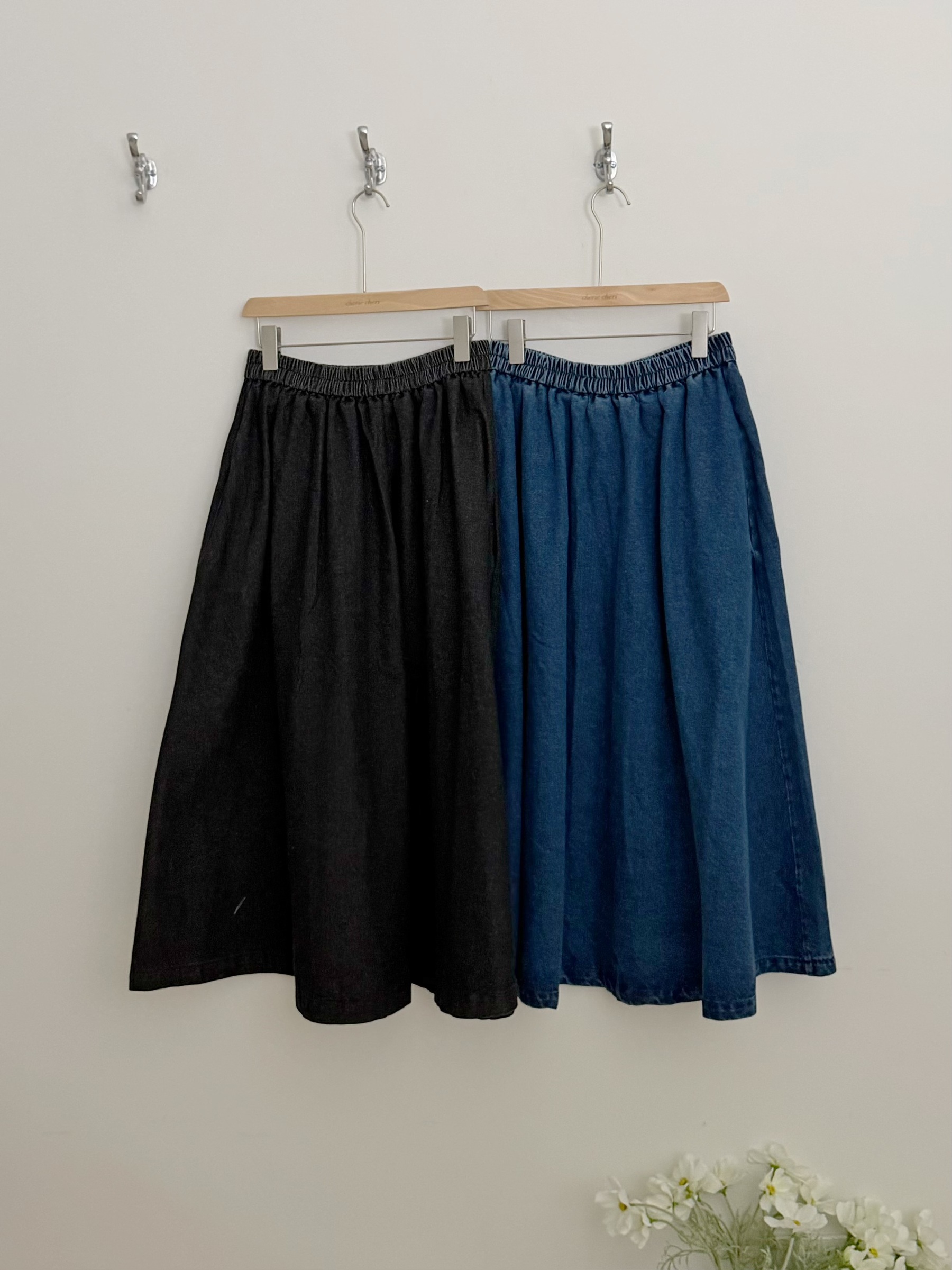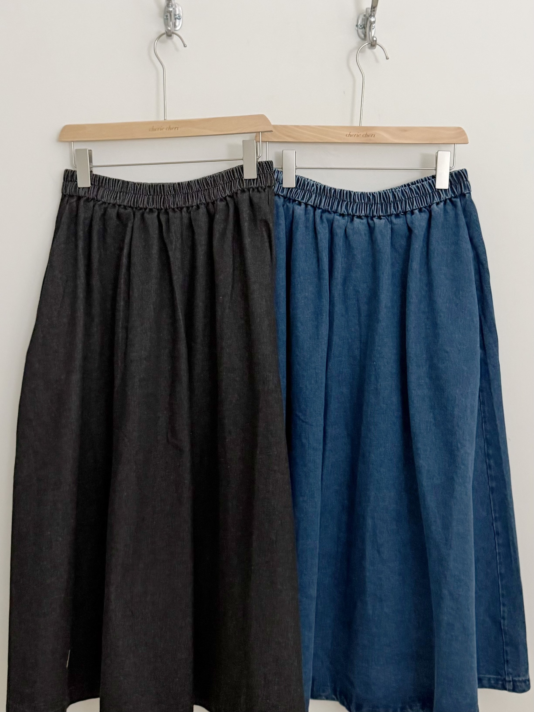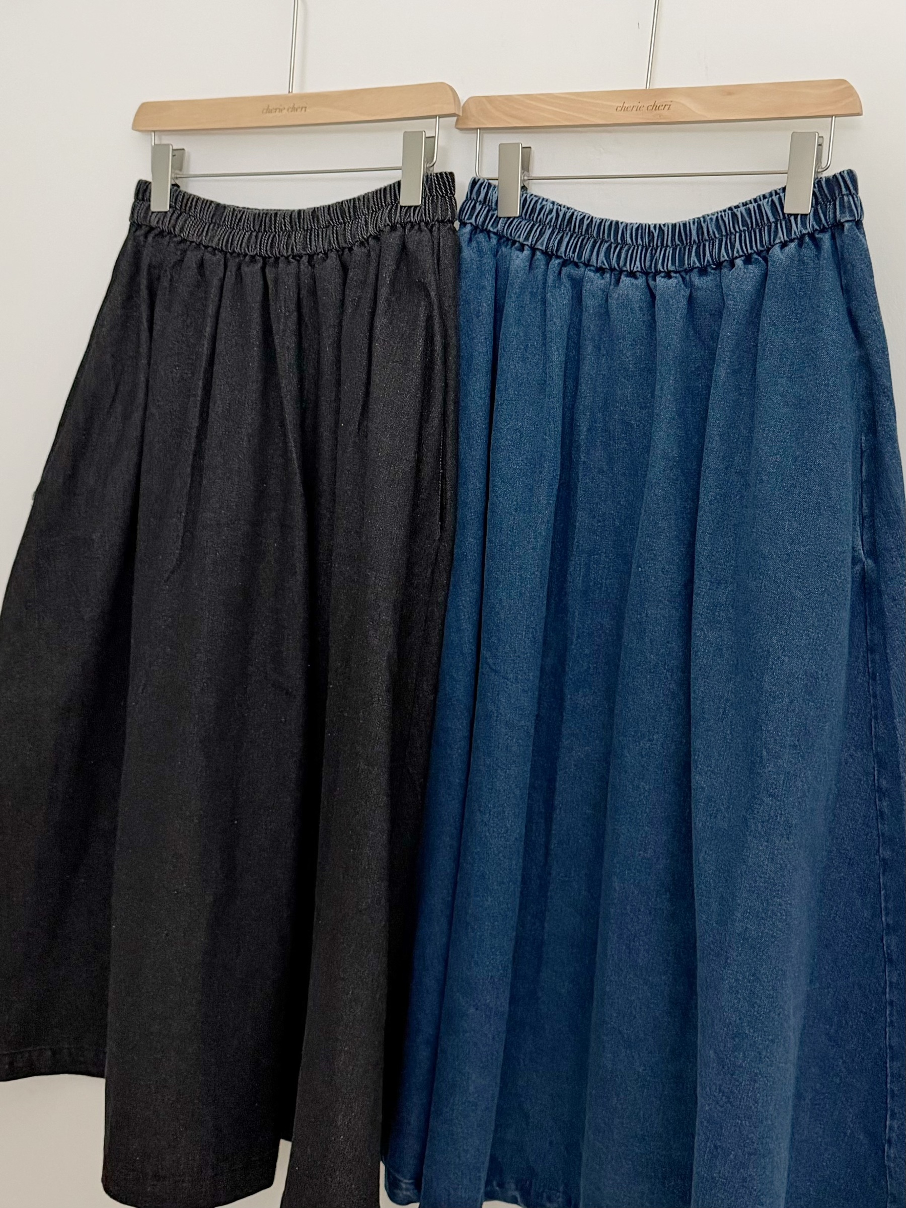 s929 質感必收款 鬆緊腰A字長裙 兩色