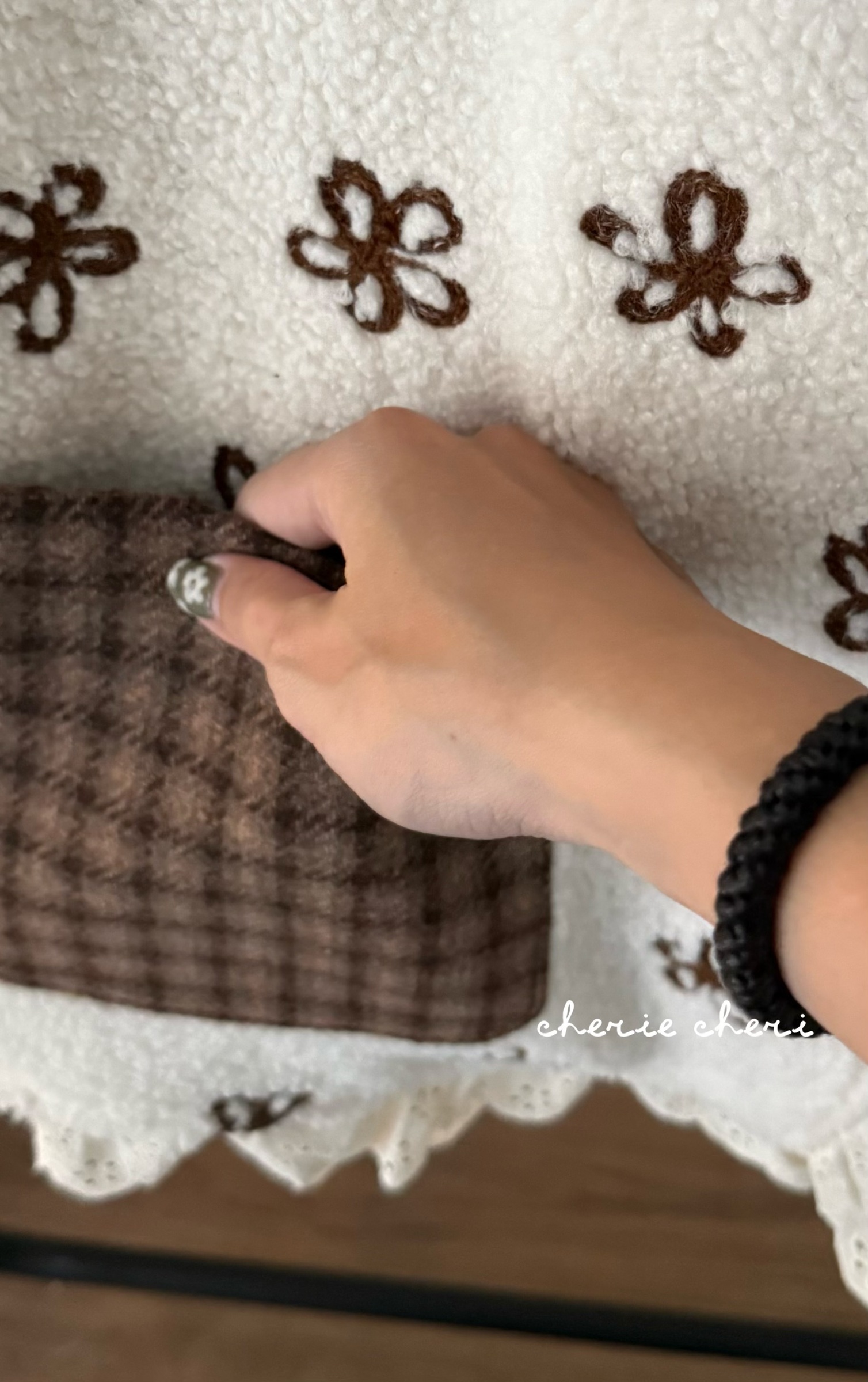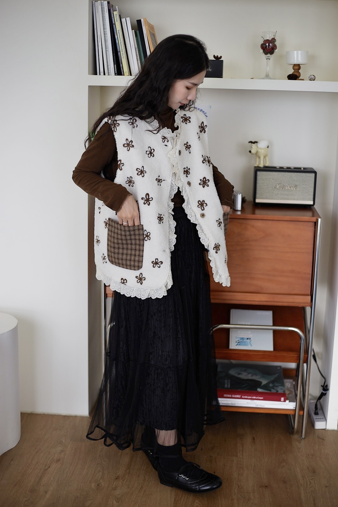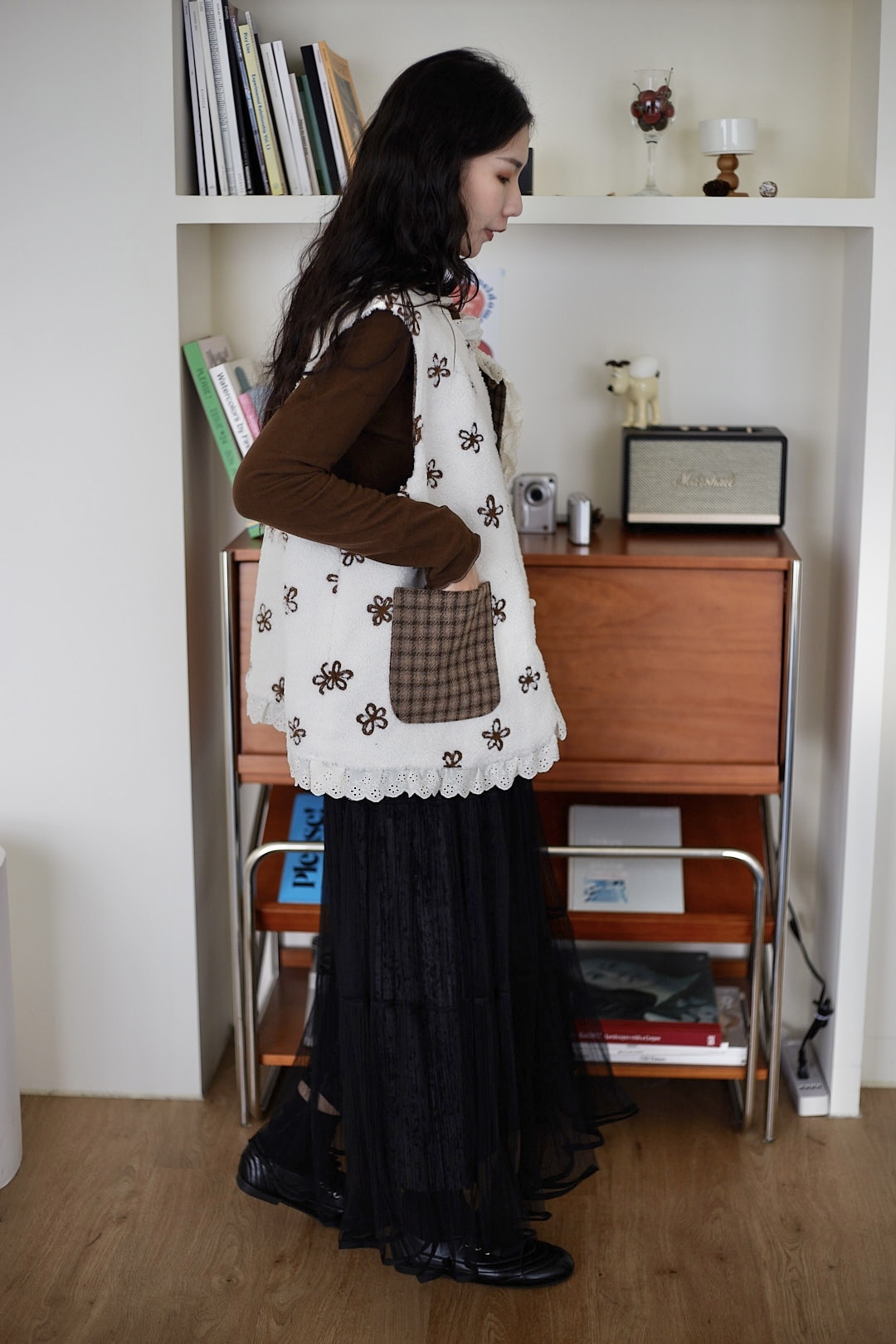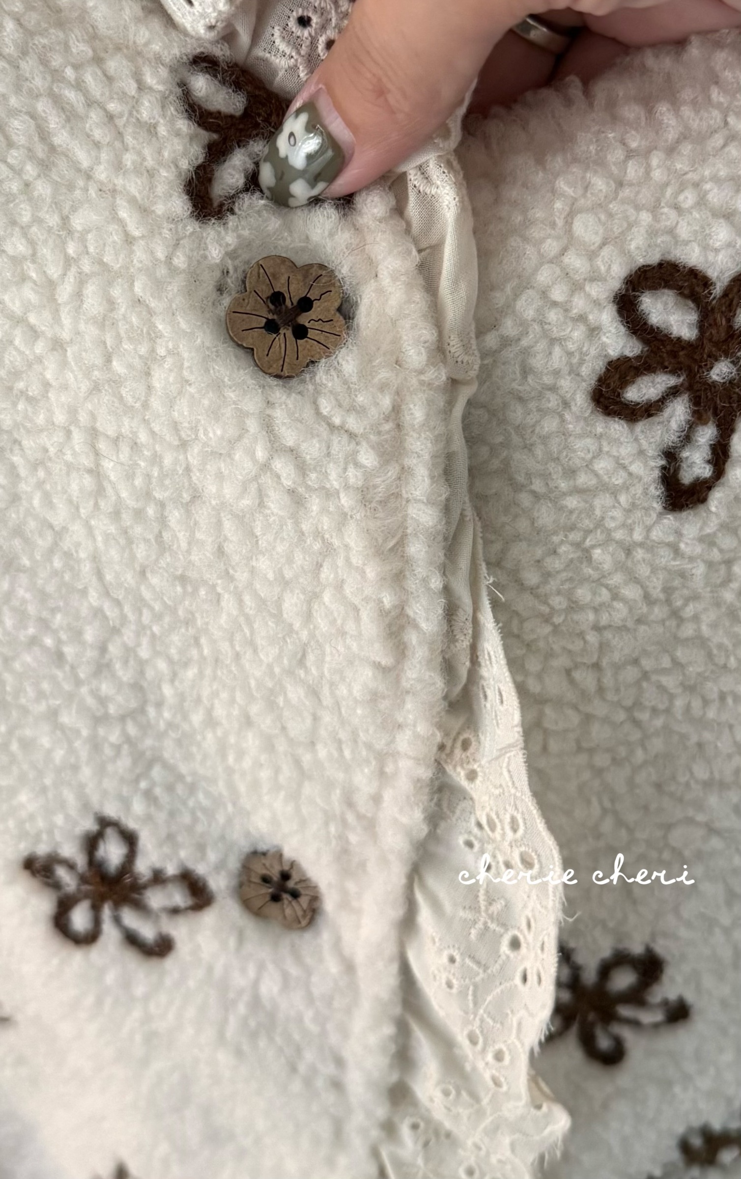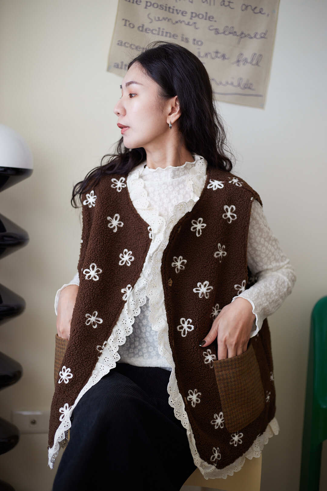 d110 必收!!花花羊羔毛蕾絲拼接背心 兩色